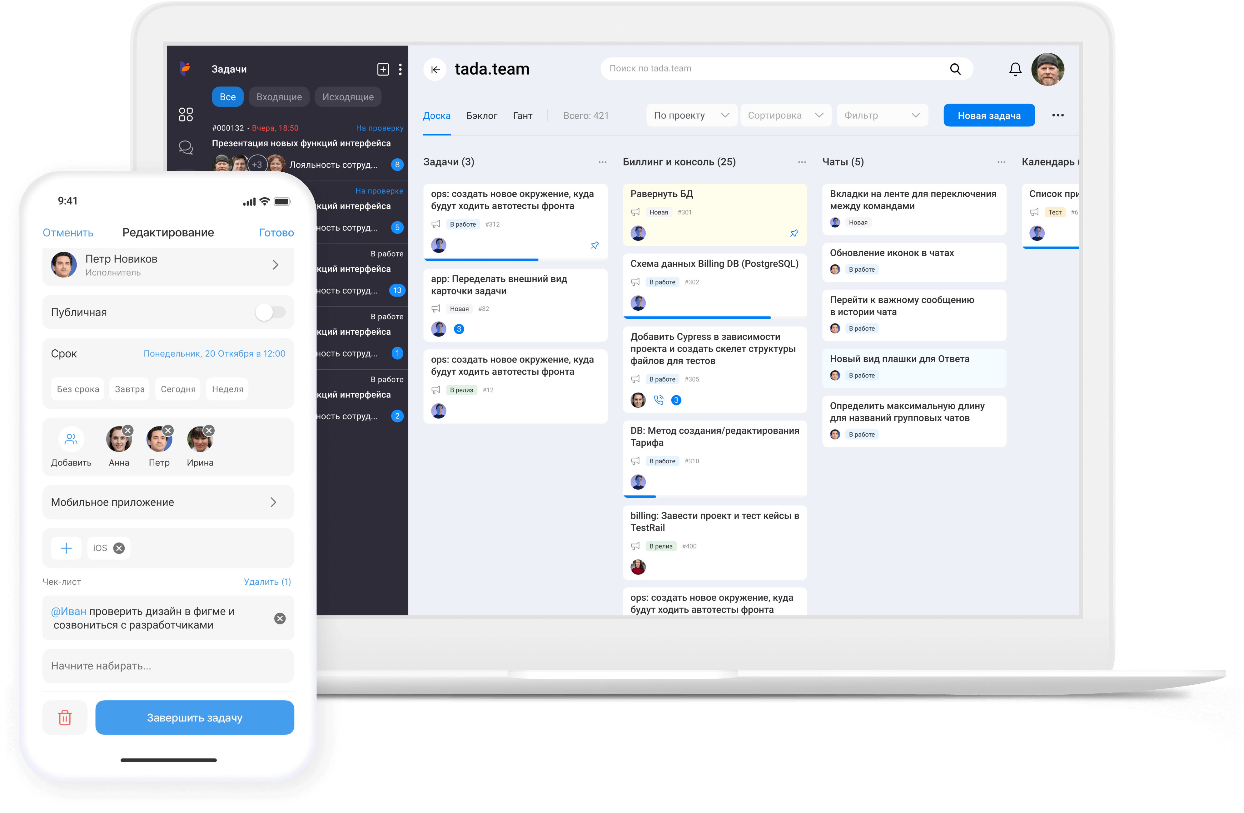 Tada.team ускоряет коммуникацию, постановку задач, мониторинг результатов, чтобы вы сосредоточились на развитии своего бизнеса